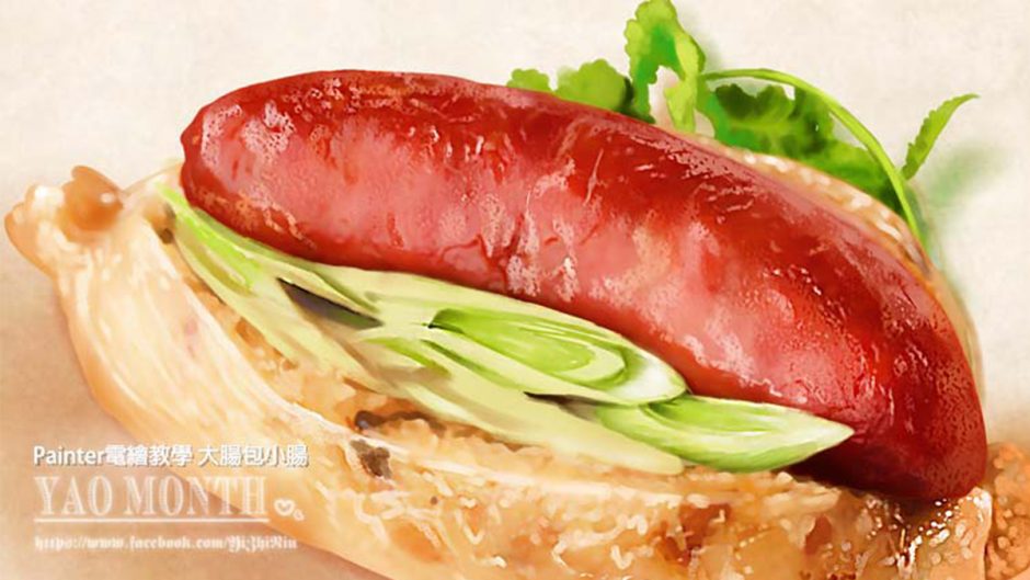 11.利用筆刷特性將香腸繪製完畢,可以拿真實的香腸照片做參考唷!