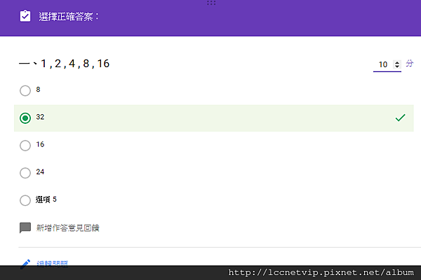 菜鳥救星教學專欄:Google表單新功能-自動評分 發佈日期: 2021-06-222021-06-17 作者: yijun 文/圖、菜鳥編 Google表單不斷的提供更便利的服務,新舊版本的轉換,是否有感受到新版的便利性?但常用Google表單的你,是否有發現最近有了新功能?平常我們不外乎使用Google表單進行問卷填寫、報名及資料收集使用。但目前你也可以將Google表單當成試卷來使用,甚至可於線上立即計算出分數來,相信對學生及老師來說是相當便利的工具喔。 啟用新功能方式很簡單,在右上方的設定就可以馬上看到新功能的選取。 也可自行設定是否要讓填寫者馬上看到成績及正確答案。 問題的設定與一般的表單設計一樣,不同處在於可以設定分數與答案,點選題目的左下方”答案”就可進行設定。 勾選正確答案及設定分數,其他問題也比照設定就可完成。甚至你可以在意見回饋中填入說明,填寫者在觀看答案時就可更進一步了解。 當作答者填寫完畢後,就可以查看分數。 右上方可看到總分,下方每一題題目也顯示你的作答與正確答案,如果你有填寫意見回饋,也會同步在這邊看到。 新版Google表單好處就是提供後臺數據,測驗表單也一樣,設計者可以在後台查看分數分布狀況,及平均作答選項喔。 對邏輯測驗有興趣的,也可至鳥編設計的測驗題去玩玩喔。 加入菜鳥救星官方Line並回覆「我想看文章」,不定期獲得更多知識吧! 不同頻道,不同知識! Facebook Instagram Youtube 分享此文: 分享到 X(在新視窗中開啟) X 分享到 Facebook(在新視窗中開啟) Facebook 分享到 Telegram(在新視窗中開啟) Telegram 以電子郵件將連結傳送給朋友(在新視窗中開啟) 電子郵件 請按讚:喜歡 正在載入... 相關