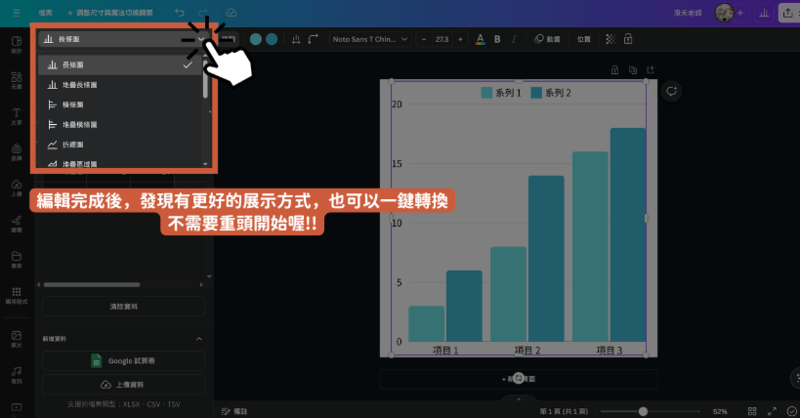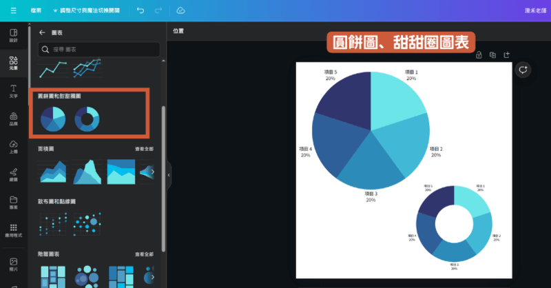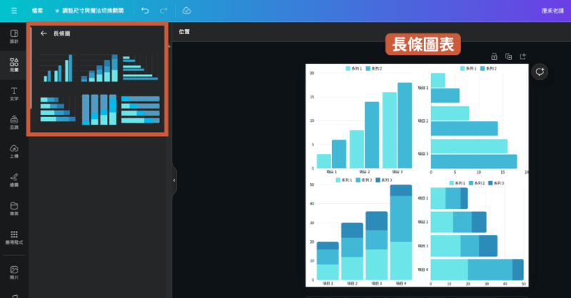 選擇正確的圖表類型是數據視覺化的關鍵。Canva 提供了多種圖表選擇: