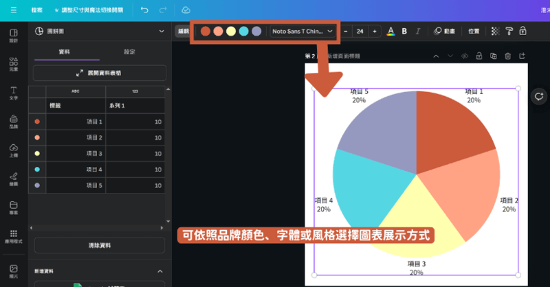 Canva 允許自定義圖表的各個方面,使其與您的品牌形象保持一致: